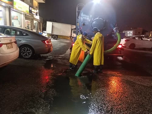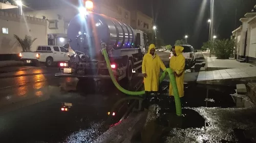 كما عملت الفرق الميدانية على سحب مياه الأمطار، من المناطق التي شهدت ارتفاعاً لمنسوب المياه.