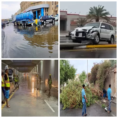ما بين اقتلاع الأشجار، وسقوط خزان مياه على سيارة، وغرق نفق الدمام، ووقوع بعض الحوادث، حالة استنفار سببتها “ساعة مطر” على المنطقة الشرقية، وتحديداً القطيف والدمام.