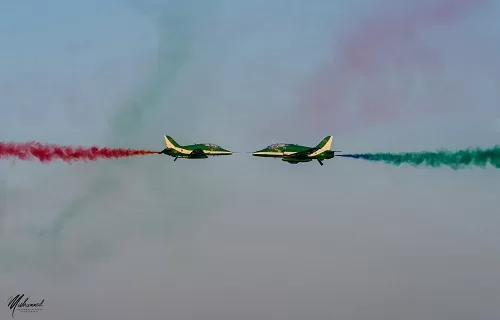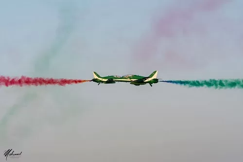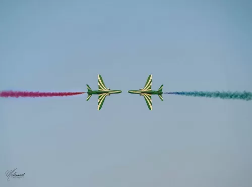 وأوضح المركز أن الفرج، قد وثق صوراً مميزة للعرض الجوي للقوات الجوية الملكية السعودية، خلال الاحتفالات.