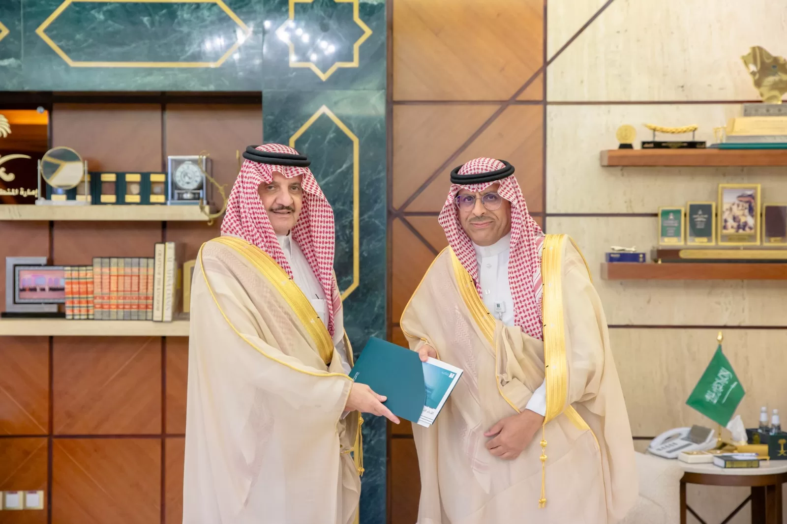 واطلع سموه على التقرير السنوي لفرع الوزارة بالمنطقة الشرقية والذي يحتوي على أهم إنجازات الفترة الماضية، مثمناً سموه بما احتوى عليه التقرير من إنجازات مؤكداً على أهمية تقديم الخدمات للمواطنين والمقيمين في المنطقة بجودة عالية.