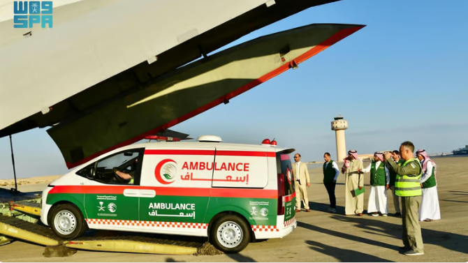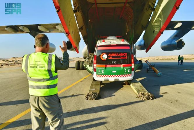 وصلت إلى مطار العريش الدولي بجمهورية مصر العربية، اليوم الجمعة، الطائرة الإغاثية السعودية الثامنة، والتي يسيرها مركز الملك سلمان للإغاثة والأعمال الإنسانية، تحمل على متنها (3) سيارات إسعاف من أصل (20) إسعاف من المقرر وصولها تباعًا، تمهيداً لنقلها إلى المتضررين من الشعب الفلسطيني داخل قطاع غزة.