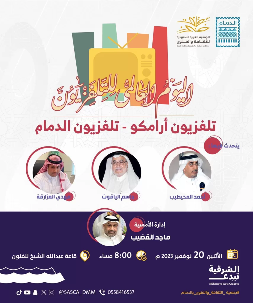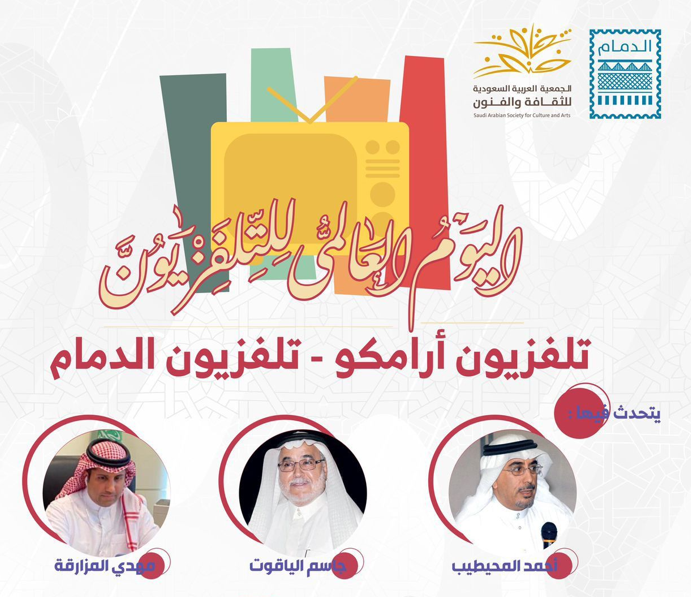 ينظم فرع جمعية الثقافة والفنون بالدمام، في الساعة الثامنة من مساء يوم الاثنين المقبل، 20 من نوفمبر الجاري بقاعة عبدالله الشيخ للفنون، أمسية الذكريات بمناسبة “اليوم العالمي للتلفزيون” و”انطلاق بث تلفزيون أرامكو، وتلفزيون الدمام، يتحدث فيها أحمد المحيطيب، وجاسم الياقوت، ومهدي المزارقة.