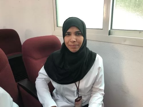 بعد ذلك قدمت اختصاصية العلاج الطبيعي غدير الصادق كلمة عن الرعاية الصحية التي يقدمونها “مرضانا ينقسمون إلى قسمين:
