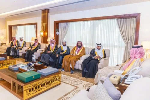 استقبل صاحب السمو الملكي الأمير سعود بن بندر بن عبدالعزيز نائب أمير المنطقة الشرقية في مكتب سموه بديوان الإمارة اليوم الخميس، رئيس مجلس إدارة جمعية تنمية الموارد المالية بالمنطقة الشرقية أحمد بن عبدالكريم الثنيان، يرافقه أعضاء مجلس الإدارة.