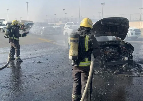 الرياض.. نجاة سائق من حريق سيارته و تفحمها