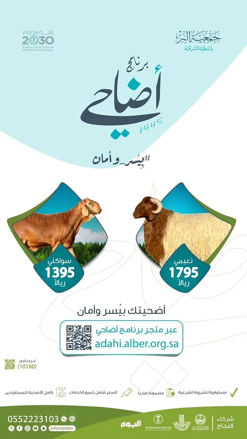بر الشرقية: 1359 ريالاً للسواكني و 1795 للنعيمي حجز إلكتروني للأضحية عبر المتجر الإلكتروني