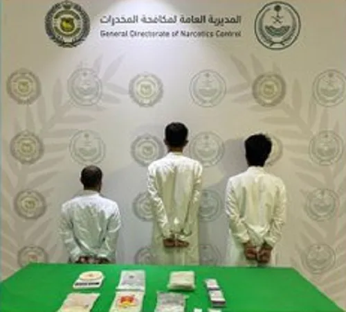 قبضت المديرية العامة لمكافحة المخدرات على (3) مواطنين بالمنطقة الشرقية لترويجهم (5.5) كيلوجرامات من مادة الحشيش المخدر، وتم إيقافهم واتخاذ الإجراءات النظامية بحقهم، وإحالتهم إلى النيابة العامة.