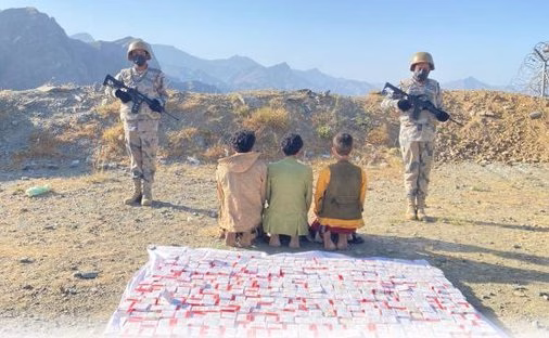 من جهة أخرى قبضت الدوريات البرية لحرس الحدود في قطاع الدائر بمنطقة جازان على (3) يمنيين مخالفين لنظام أمن الحدود لتهريبهم (55350) قرصًا خاضعًا لتنظيم التداول الطبي، وجرى استكمال الإجراءات النظامية الأولية بحقهم، وتسليمهم والمضبوطات لجهة الاختصاص.