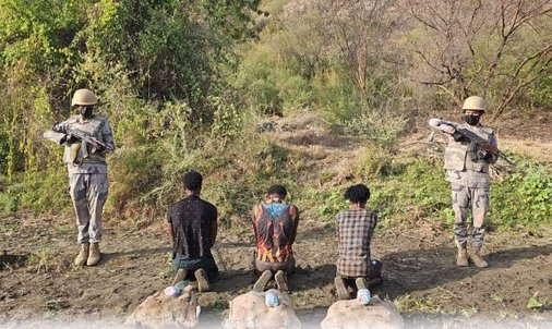 كما قبضت الدوريات البرية لحرس الحدود في قطاع الدائر بمنطقة جازان على (3) إثيوبيين ويمنيين مخالفين لنظام أمن الحدود؛ لتهريبهم (60) كيلوجراماً من نبات القات المخدر، وجرى استكمال الإجراءات النظامية الأولية بحقهم، وتسليمهم والمضبوطات لجهة الاختصاص.