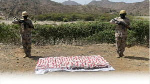 فيما أحبطت دوريات الإدارة العامة للمجاهدين بمنطقة جازان تهريب (507) كيلو جرامات من نبات القات المخدر، وجرى استكمال الإجراءات النظامية الأولية، وتسليم المضبوطات لجهة الاختصاص.