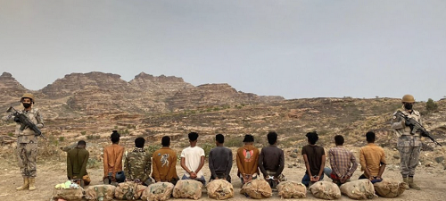 وقبضت الدوريات البرية لحرس الحدود في قطاع الربوعة بمنطقة عسير على (11) مخالفًا لنظام أمن الحدود ، لتهريبهم (275) كيلوجرامًا من نبات القات المخدر، وجرى استكمال الإجراءات النظامية الأولية بحقهم، وتسليمهم والمضبوطات لجهة الاختصاص.