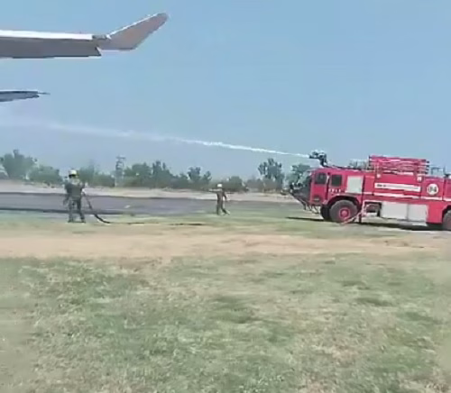 سيطرت فرق الإطفاء في مطار بيشاور الباكستاني على انبعاث دخان من طائرة تابعة للخطوط السعودية أثناء هبوطها.