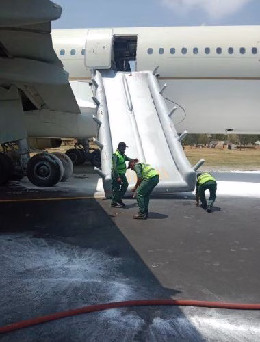وأضافت “تم إيقاف الطائرة على الفور وتم إخطار الجهات المختصة وتم إجلاء جميع الضيوف وطاقم الطائرة بأمان من خلال شريحة الإخلاء، وتخضع الطائرة الآن للتقييم الفني من قبل المتخصصين”.