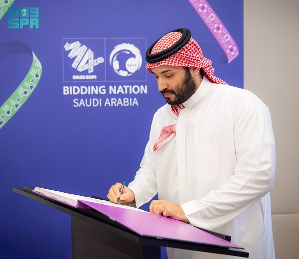 بارك صاحب السمو الملكي الأمير محمد بن سلمان بن عبد العزيز آل سعود، ولي العهد رئيس مجلس الوزراء – حفظه الله -، ملف ترشح المملكة لاستضافة كأس العالم 2034 بعد استكمال جميع التفاصيل والاشتراطات للملف استعداداً لتسليمه للفيفا في العاصمة الفرنسية باريس من الوفد الرسمي برئاسة صاحب السمو الملكي الأمير عبدالعزيز بن تركي بن فيصل بن عبدالعزيز، وزير الرياضة رئيس اللجنة الأولمبية والبارالمبية السعودية، ورئيس الاتحاد السعودي لكرة القدم ياسر المسحل.