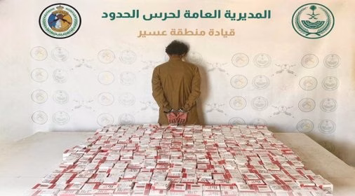 كما قبضت الدوريات البرية لحرس الحدود في قطاع الربوعة بمنطقة جازان على مخالف لنظام أمن الحدود من الجنسية اليمنية لتهريبه (49,500) قرص خاضع لتنظيم التداول الطبي، وجرى استكمال الإجراءات النظامية الأولية بحقه، وتسليمه والمضبوطات لجهة الاختصاص.