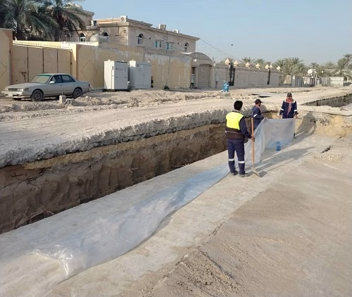 تواصل بلدية محافظة القطيف، أعمال إنشاء وتطوير شارع الرياض في القطيف بطول 5000 متر وعرض 40 متراً.