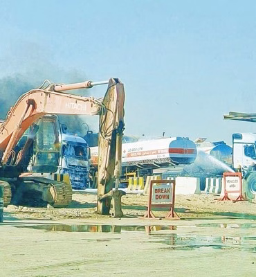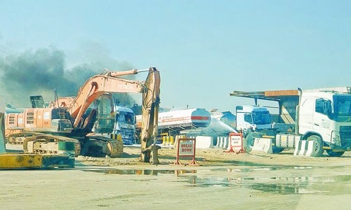 تسبب حريق اندلع صباح اليوم في موقع لإحدى الشركات غرب الجش، في احتراق بعض المعدات الثقيلة والشاحنات.