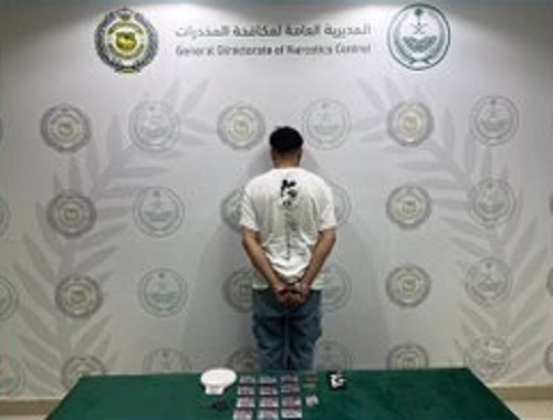 من جهة أخرى قبضت دوريات الأمن بمنطقة الرياض على إثيوبي مخالف لنظام أمن الحدود، لترويجه مادتي الحشيش والميثامفيتامين (الشبو) المخدرتين و(3550) قرصًا خاضعًا لتنظيم التداول الطبي، وجرى إيقافه واتخاذ الإجراءات النظامية بحقه، وإحالته إلى جهة الاختصاص.