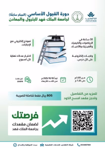 طلاب وطالبات الصف الثالث ثانوي .. فرصتكم لضمان مقعدكم بجامعة الملك فهد بدء التسجيل في دورة اختبار القبول الأساسي ( المبكر سابقاً )