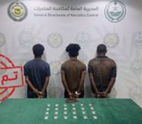قبضت المديرية العامة لمكافحة المخدرات على (3) مخالفين لنظام أمن الحدود من الجنسية الإثيوبية بمنطقة الباحة لترويجهم مادتي الحشيش والإمفيتامين المخدرتين، وجرى إيقافهم واتخاذ الإجراءات النظامية بحقهم، وإحالتهم إلى النيابة العامة.