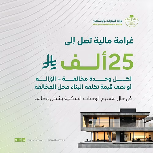 25 ألف ريال.. غرامة تقسيم المباني إلى وحدات مخالفة "البلديات والإسكان" تُقرّ تحديثات لائحة الجزاءات عن مخالفات البناء