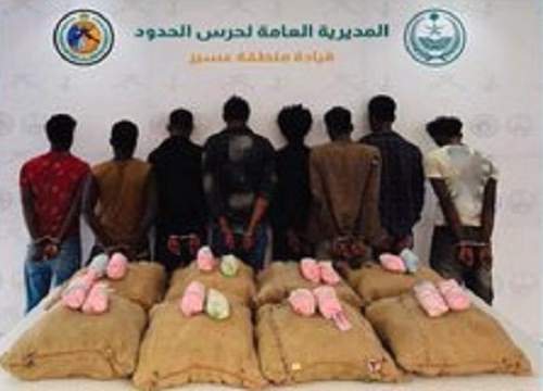 كما قبضت الدوريات البرية لحرس الحدود في قطاع الربوعة بمنطقة عسير على (8) مخالفين لنظام أمن الحدود من الجنسية الإثيوبية، لتهريبهم (160) كيلوجرامًا من نبات القات المخدر، وجرى استكمال الإجراءات النظامية الأولية بحقهم، وتسليمهم والمضبوطات لجهة الاختصاص.
