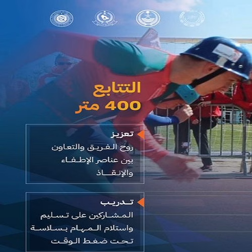 وتحمل مسابقة التتابع 400 متر مهارات الاستعداد البدني والعمل فريقًا واحدًا، والقدرة على التحمّل، من خلال سباق تتابعي بمشاركة أربعة متسابقين ينفذ كل منهم جزءًا معينًا من عملية الإطفاء.