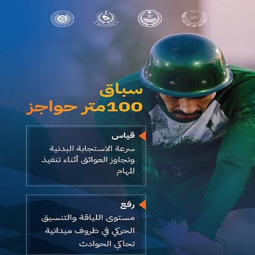 ويتنافس المشاركون في مسابقة 100 متر حواجز على الجري لمسافة 100 متر، والقفز فوق الحواجز، وحمل خراطيم المياه والمعدات وتوصيلها بسرعة، لقياس مستوى سرعة الاستجابة والدقة في تنفيذ العمل بزمن قياسي، كذلك القدرة على تجاوز الحواجز والثقة بالنفس.