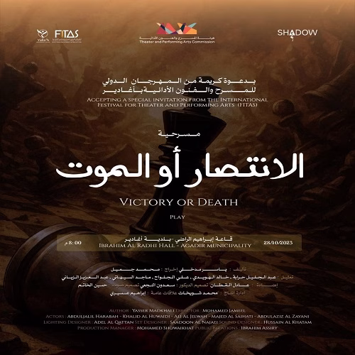 أكد المخرج محمد جميل، أن مشاركة مسرحية “الانتصار أو الموت” في المهرجان الدولي للمسرح وفنون الخشبة بمدينة أغادير في المملكة المغربية، هو ثاني مشاركة لفرقة شدو في هذا المهرجان.
