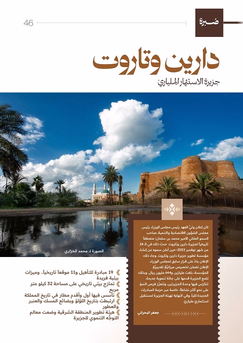 كان إعلان ولي العهد رئيس مجلس الوزراء رئيس مجلس الشؤون الاقتصادية والتنمية، صاحب السمو الملكي الأمير محمد بن سلمان؛ منعطفاً تاريخياً لجزيرة دارين وتاروت. حدث ذلك في الـ 24 من شهر نوفمبر 2022 حين أعلن سموه عن إنشاء مؤسسة تطوير جزيرة دارين وتاروت. وجاء ذلك الإعلان بناءً على قرار سابق لمجلس الوزراء.