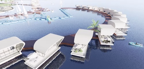 شاليهات عائمة وسط البحر، مرتبطة باليابسة بجسر، وهي عبارة عن كبائن، وتكون الإقامة فيها لمدة ساعات فقط، ولا يمكن المبيت فيها مراعاة للسلامة.