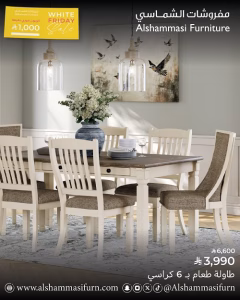 مفروشات الشماسي.. الجمعة البيضاء.. طاولة طعام “6 كراسي” بـ 3,990 ر.س