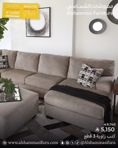 مفروشات الشماسي.. الجمعة البيضاء.. كنب زاوية فخم “3 قطع”
