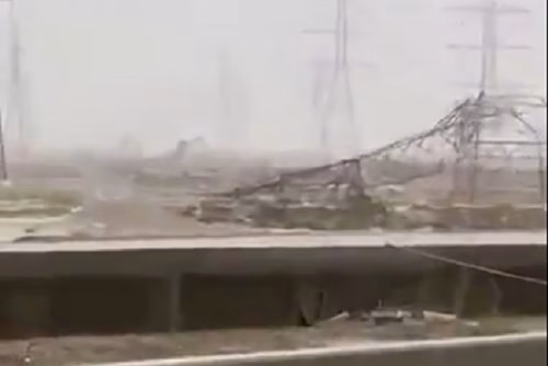 وتداول مغردون عبر موقع التواصل إكس، مقاطع فيديو لسقوط برج كهرباء في ينبع الصناعية، إثر ذلك سقطت كابلات الكهرباء في منتصف الطريق.