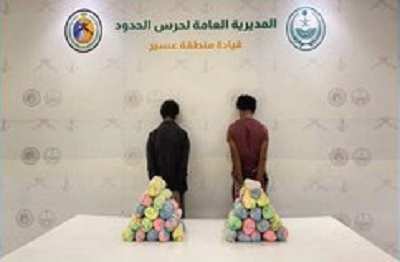 من جهة أخرى ألقت دوريات حرس الحدود بمنطقة عسير القبض على يمنيين مخالفين لنظام أمن الحدود، لتهريبهما (34) كيلوجرامًا من نبات القات المخدر.