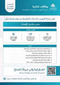 فرصة عمل.. مدير سلاسل الإمداد في شركة التهذيب للخدمات التعليمية