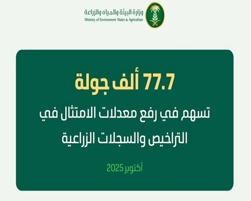 نفذت وزارة البيئة والمياه والزراعة، 77700 زيارة موجهة للمنشآت خلال شهر أكتوبر الماضي.