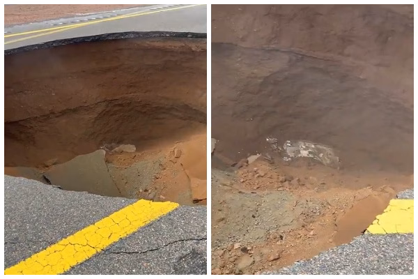 وكان رواد مواقع التواصل الاجتماعي، قد تداولوا مقطع فيديو لموقع الانهيار الأرضي، ووثق حجم الانهيار الذي بدا كبيراً، ولكنه مر بسلام دون أن يتأذى المارة، او تتأذى سياراتهم.