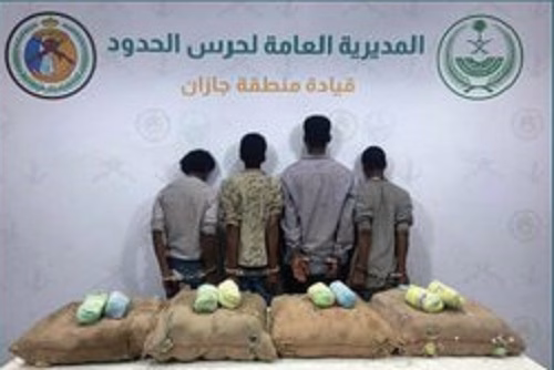 من جهة أخرى ألقت دوريات حرس الحدود بمنطقة جازان، القبض على (4) إثيوبيين مخالفين لنظام أمن الحدود، لتهريبهم (80) كيلوجرامًا من نبات القات المخدر.