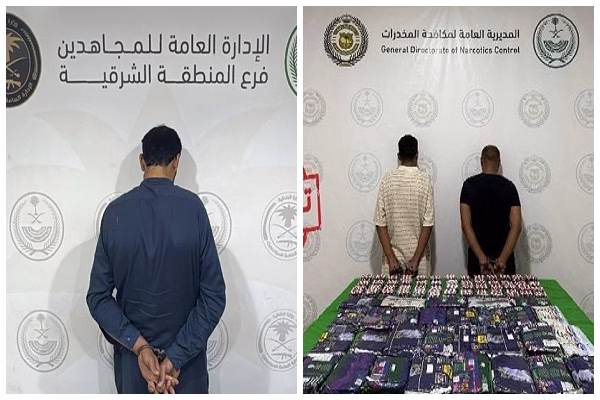 في يوم واحد، ألقت دوريات المجاهدين، ومكافحة المخدرات في الشرقية، القبض على مواطنين ومقيم باكستاني، يروجون مواد مخدرة، تنوعت بين الشبو، والحشيش المخدر، وأقراص خاضعة لتنظيم التداول الطبي،