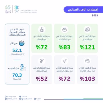 أعلنت الهيئة العامة للإحصاء، اليوم الخميس، تفاصيل إحصاءات الأمن الغذائي للعام الماضي 2024م.