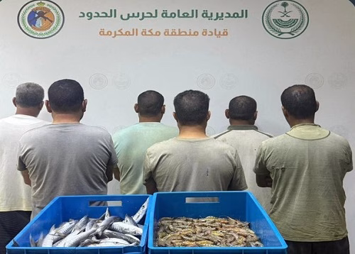 كما ضبطت الدوريات الساحلية لحرس الحدود في محافظة القنفذة بمنطقة مكة المكرمة (6) مقيمين من الجنسية المصرية مخالفين للائحة الأمن والسلامة لمزاولي الأنشطة البحرية في المناطق البحرية للمملكة العربية السعودية؛ وذلك لممارستهم الصيد دون تصريح، وبحوزتهم أسماك مصيدة، واتُخذت الإجراءات النظامية بحقهم بالتنسيق مع الجهات المختصة.