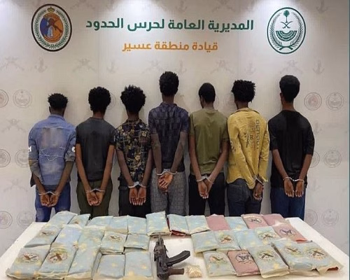 عسير.. حرس الحدود ينهي مغامرة 7 إثيوبيين بحوزتهم 71 كيلو حشيش