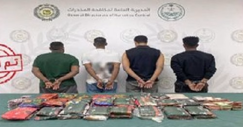 من جهة أخرى ألقت دوريات حرس الحدود بمنطقة عسير، القبض على (7) إثيوبيين مخالفين لنظام أمن الحدود، لتهريبهم (950) قرصًا من مادة الإمفيتامين المخدر، و(71) كيلوجرامًا من مادة الحشيش المخدر.
