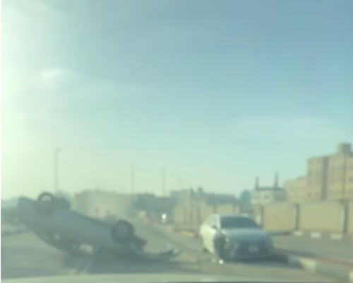 صفوى.. انقلاب سيارة امرأة في شارع الملك خالد