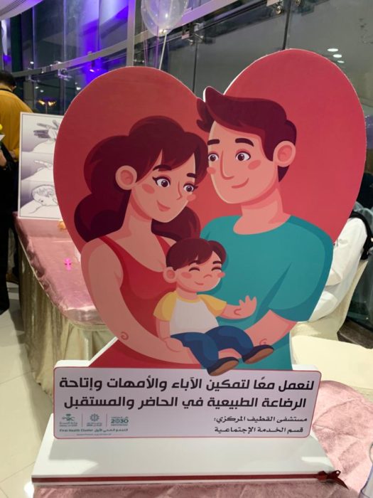 فعالية الأسبوع اختتمت أمس، واستمرت يومين، في سيتي مول القطيف، وزارها نحو 1200 زائر وزائرة، تعرفوا على الأركان المختلفة، وما تقدمه من نصائح تدور جميعها حول أهمية الرضاعة الطبيعية.