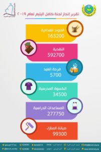 ومن جانبها، قدمت لجنة كافل اليتيم مساعدات نقدية بقيمة 592.700 ريال، ومساعدات غذائية بقيمة 163.200 ريال، أما المصروفات الأخرى للجنة، فقد توزعت بين الكسوة المدرسية التي بلغت 34.500 ريال، والمساعدات المدرسية الأخرى التي بلغت 277.750 ريالاً، وقيمة المصروفات الخاصة بترميم منازل أسر الأيتام وصلت إلى 99300 ريال.