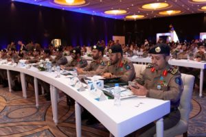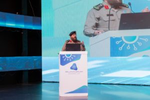 وألقى الفريق العمرو كلمة قال فيها إن “الملتقى سيطرح عدداً من أوراق العمل  والتجارب  والمبادرات حول المستقبل والمنافسة في تحقيق رؤية القيادة الرشيدة، من خلال الإبداع في الطرح والتجديد في الأداء، مستغلين أحدث التقنيات الإلكترونية الحديثة، وأدق تقنيات التواصل الاجتماعي الجديد؛ للوصول لهدفنا الرئيس، وهو سلامة الإنسان وحماية الممتلكات عبر الرؤى والتطلعات المستجدة. بعد ذلك، ألقى ضيف الشرف الفريق خالد المكراد كلمة أشار فيها إلى أن الملتقى يعد فرصة لتبادل الأفكار والخبرات والاستفادة منها وتطويرها وتنميتها .