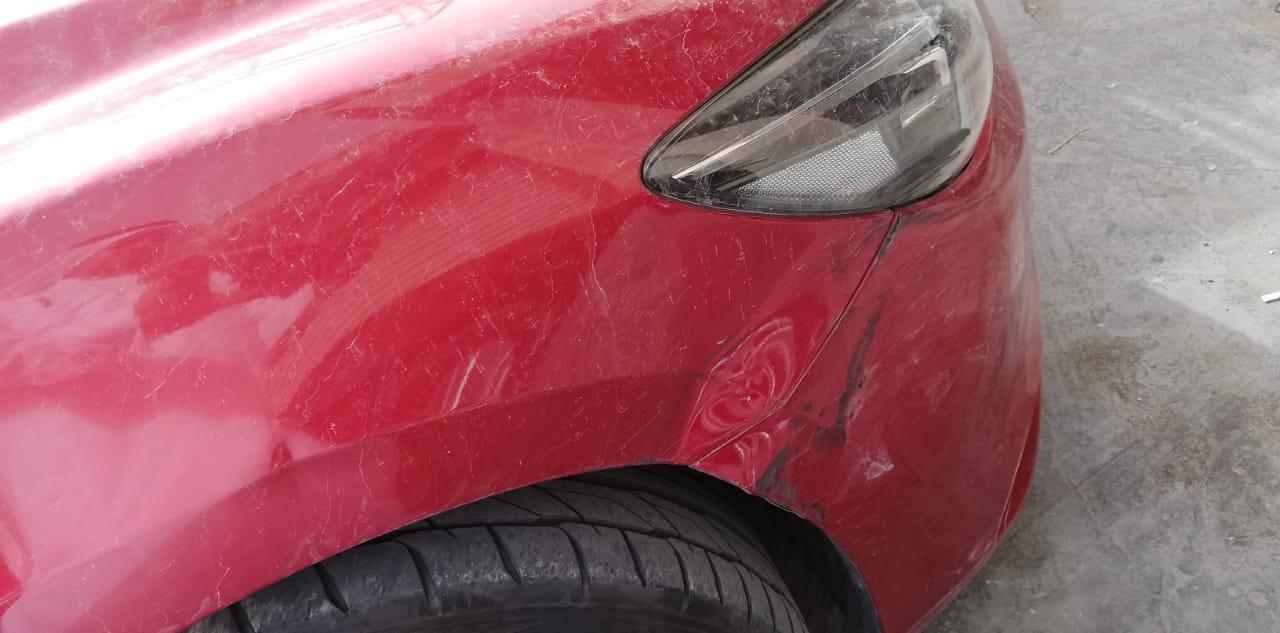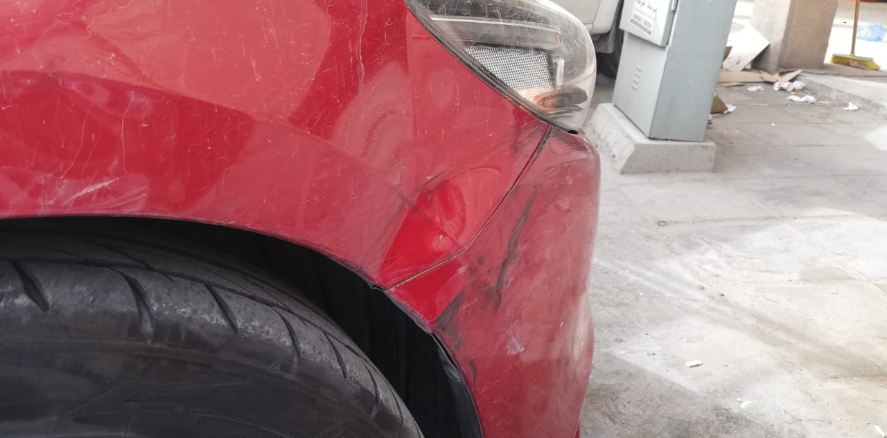 القصة الأخرى في مواقف إحدى المحلات.. ما ان خرجت إلا وسيارتي مصدومة من سيارة أخرى.. ولكن صاحبها لاذ بالفرار أيضا تاركا بصمته على السيارة.