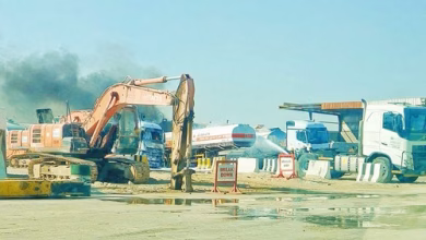 غرب الجش.. حريق يلتهم معدات ثقيلة و شاحنات